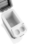 Az autós hűtőtáska nemcsak az ételek számára biztosít ideális körülményeket, hanem praktikus tárolóhelyet is kínál palackok vagy poharak számára, valamint csúszásgátló felületet az apróságok elhelyezésére. Ezen felül két USB-porttal is rendelkezik, amelyek segítségével egyszerűen töltheti mobiltelefonját, tabletjét vagy GPS-ét. Így nemcsak ön, hanem az okoseszközei is friss energiához jutnak.